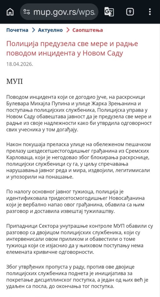 МУП под притиском медија и председника државе покреће поступак према полицајцима са озбиљним правним квалификацијама, иако доступни снимци не указују на незаконито поступање. Синишу суспендују!